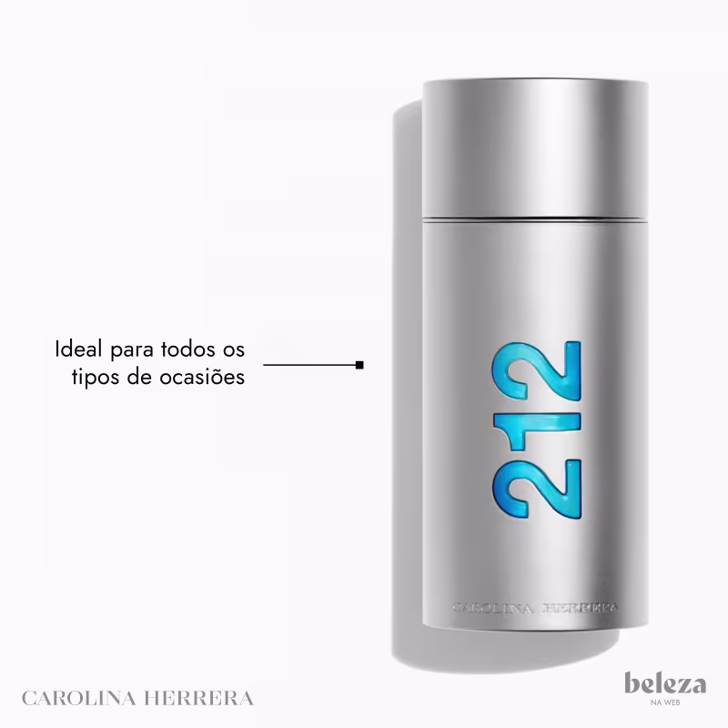 Carolina Herrera entrega uma versão do perfume 212 masculino com notas frescas de Verde Energético equilibradas com Especiarias sensuais e apimentadas, Sândalo Quente e Madeira do Guáiaco.