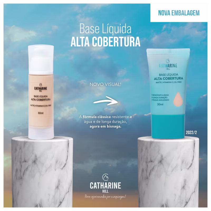 A Base Alta Cobertura Chill, da Catharine Hill, investe no empoderamento para que você mostre sua verdadeira personalidade por meio do seu look. Possui embalagem airless para aproveitar o máximo da fórmula sem oxidar ou sofrer contaminação com o meio externo. As cores possuem vários fundos para abranger diversos tons de pele: