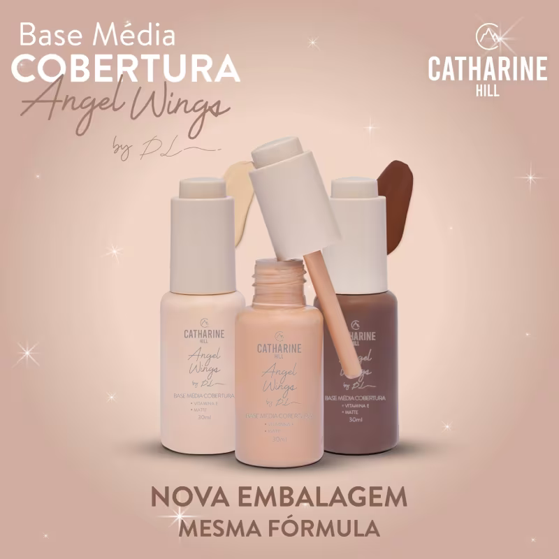 A Base Líquida Catharine Hill CHILL Angel Wings traz na fórmula a Vitamina E, que ajuda a cuidar da pele durante a make. Ela possui uma consistência confortável e garante uma cútis uniforme. Disponível diversas tonalidades com o fundo amarelado.