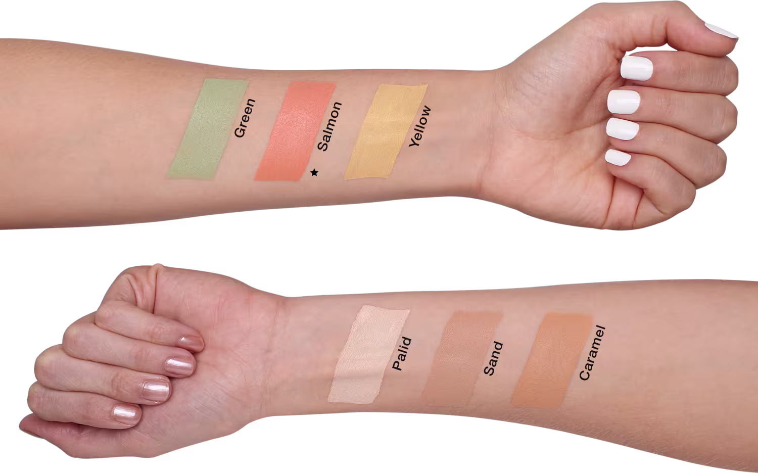 - Salmão: para camuflagem de manchas brancas em peles claras e para manchas azuladas.