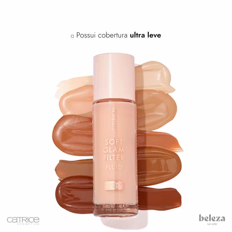 A Base Líquida Catrice Soft Glam Filter tem uma performance ideal para usar no dia a dia. Sua fórmula inovadora confere à pele um efeito de “filtro com brilho suave”, como um toque de magia para um rosto radiante. Versátil, pode ser usada sozinha para um look natural e iluminado ou com uma make mais elaborada.