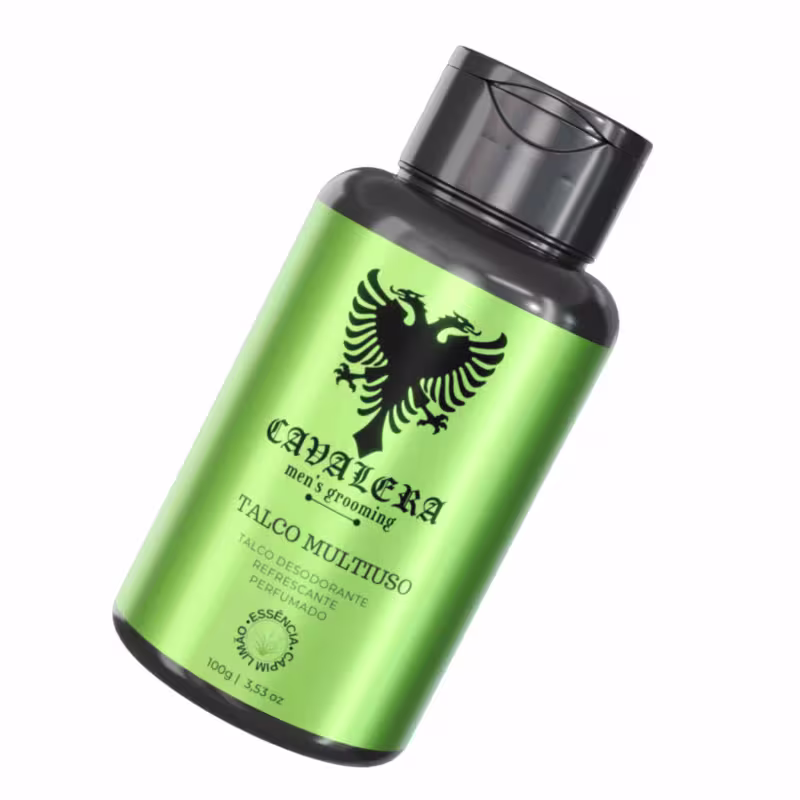 Talco Multiuso Cavalera Capim Limão. Controla oleosidade da barba e cabelo, auxiliando na regeneração pós-barbear. Melhores produtos Cavalera na BLZ. Ver mais ❯
