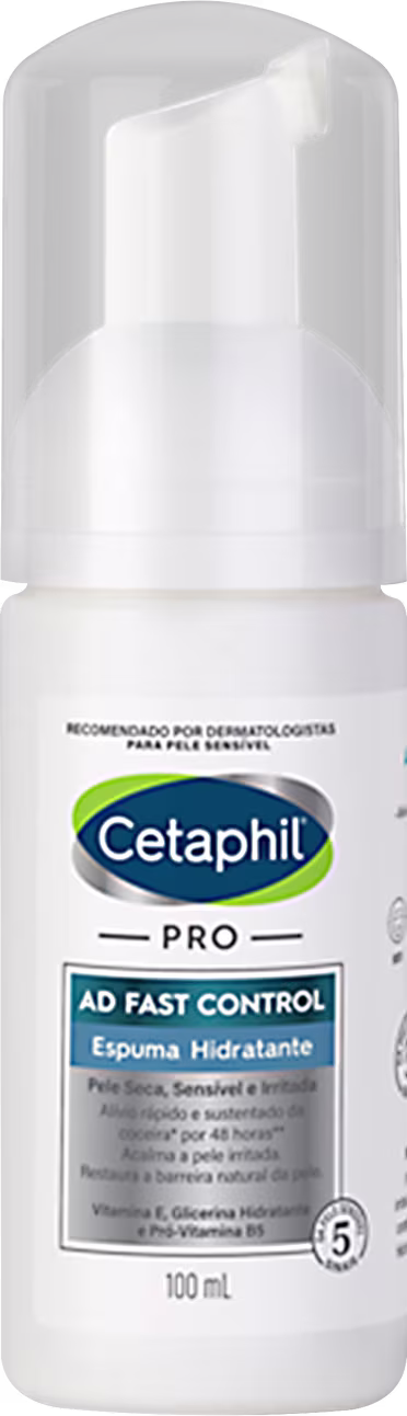 Cetaphil PRO AD Fast Control é a primeira espuma hidratante para pele atópica, especialmente formulada para uso na pele sensível e sensibilizada nos momentos de ressecamento, irritação e coceira. Conta com poderosa fórmula hipoalergênica e sem fragrância. O produto pode ser usado tanto no rosto quanto no corpo, promovendo alívio instantâneo, acalmando a região e garantindo sensação de frescor e bem-estar por até 48 horas.