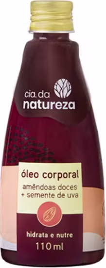 Não sei o CEPÓleo corporal para todos os tipos de pele. Cia da Natureza Amêndoas Doces e Semente de Uva hidrata e nutre intensamente a pele, com ação umectante e antioxidante.