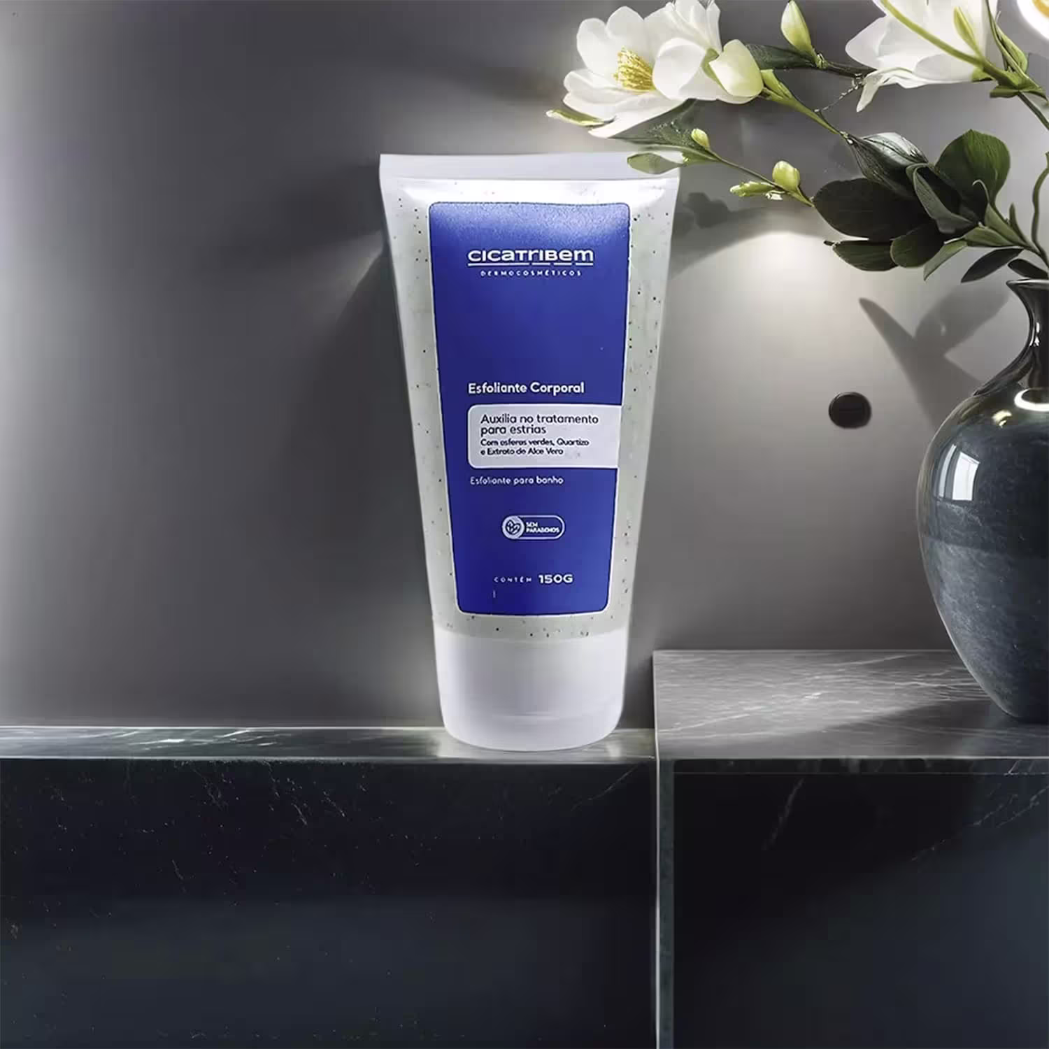 Esfoliante corporal. Cicatribem Antiestrias poderosa ferramenta para limpeza e renovação celular, além de auxiliar no tratamento de estrias.