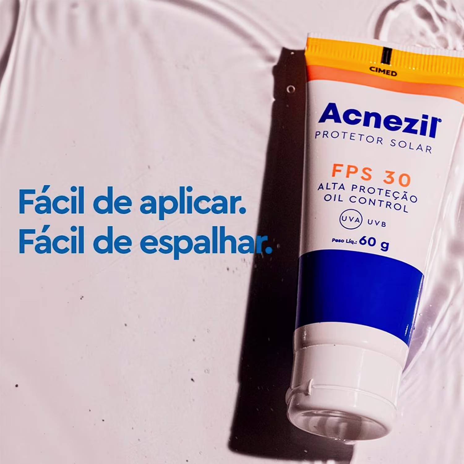 Protetor solar ideal para peles acneicas. Acnezil FPS 30 possui uma proteção alta para raios UVA e UVB com maravilhoso efeito matte e acabamento invisível.