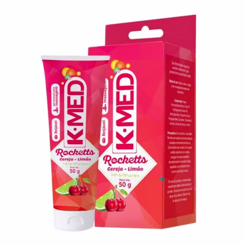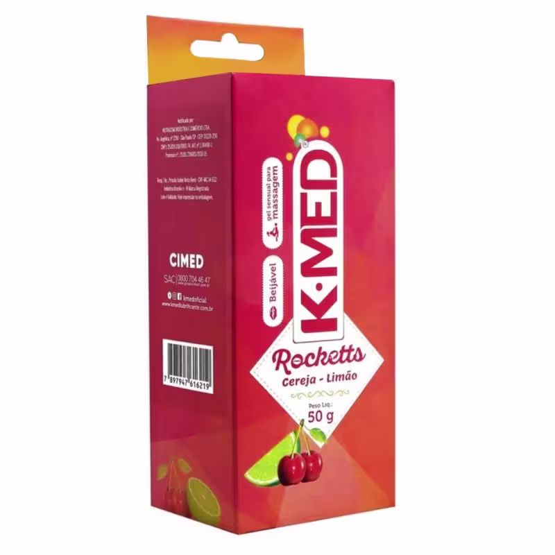 Gel beijável com aroma de cereja e limão. Cimed K-MED Rocketts Cereja e Limão desperta uma experiência sensorial incrível trazendo novas possibilidades de estímulos e sensações para os momentos de prazer.