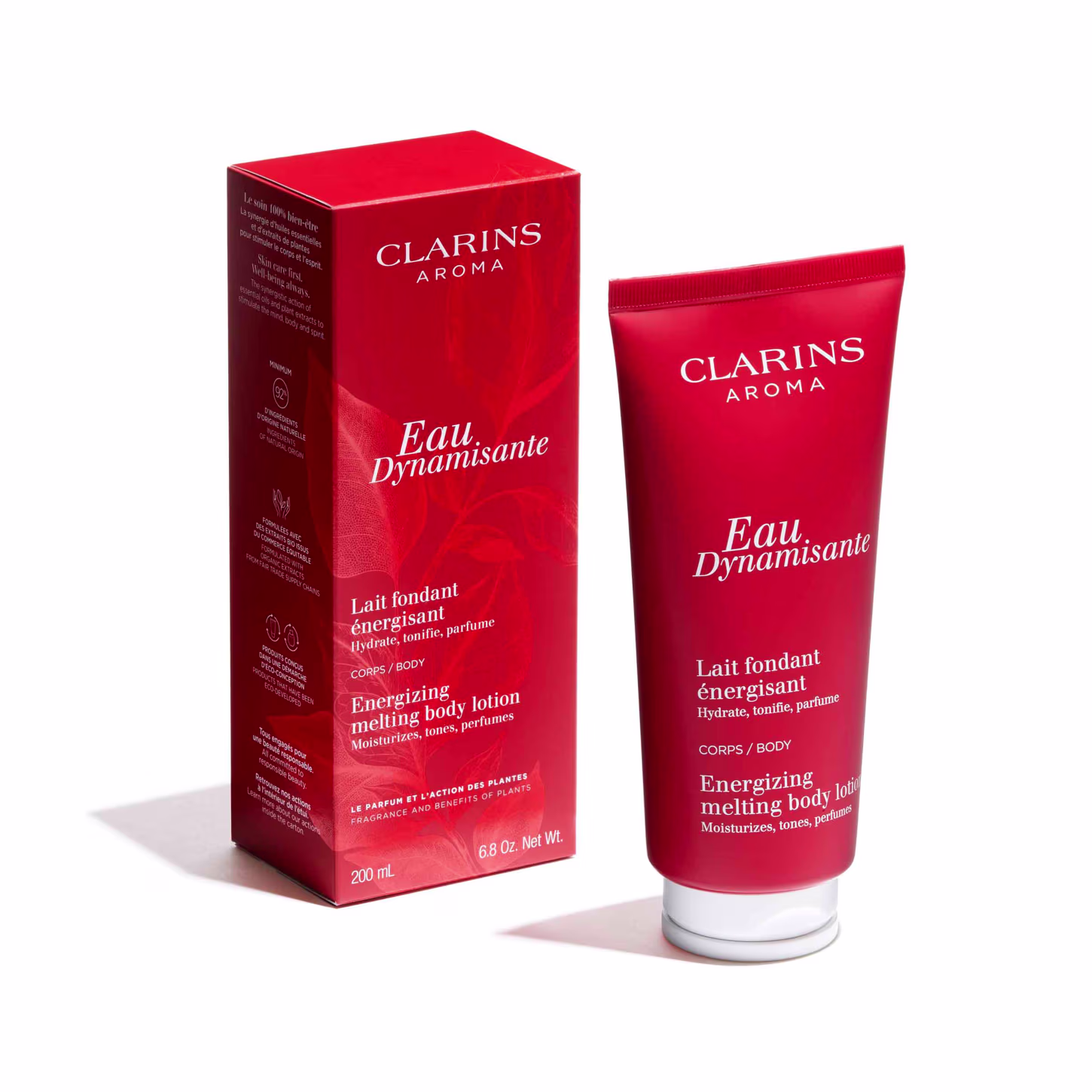 A Loção Hidratante Corporal Clarins Aroma Eau Dynamisante aumenta a sua energia graças à sua textura cremosa deliciosamente perfumada, que combina a fragrância revigorante dos óleos essenciais Eau Dynamisante com extrato orgânico de kalanchoe e óleo de avelã para hidratar e nutrir intensamente a pele. De rápida absorção, deixa a pele macia, suave e tonificada, sem efeito gorduroso.