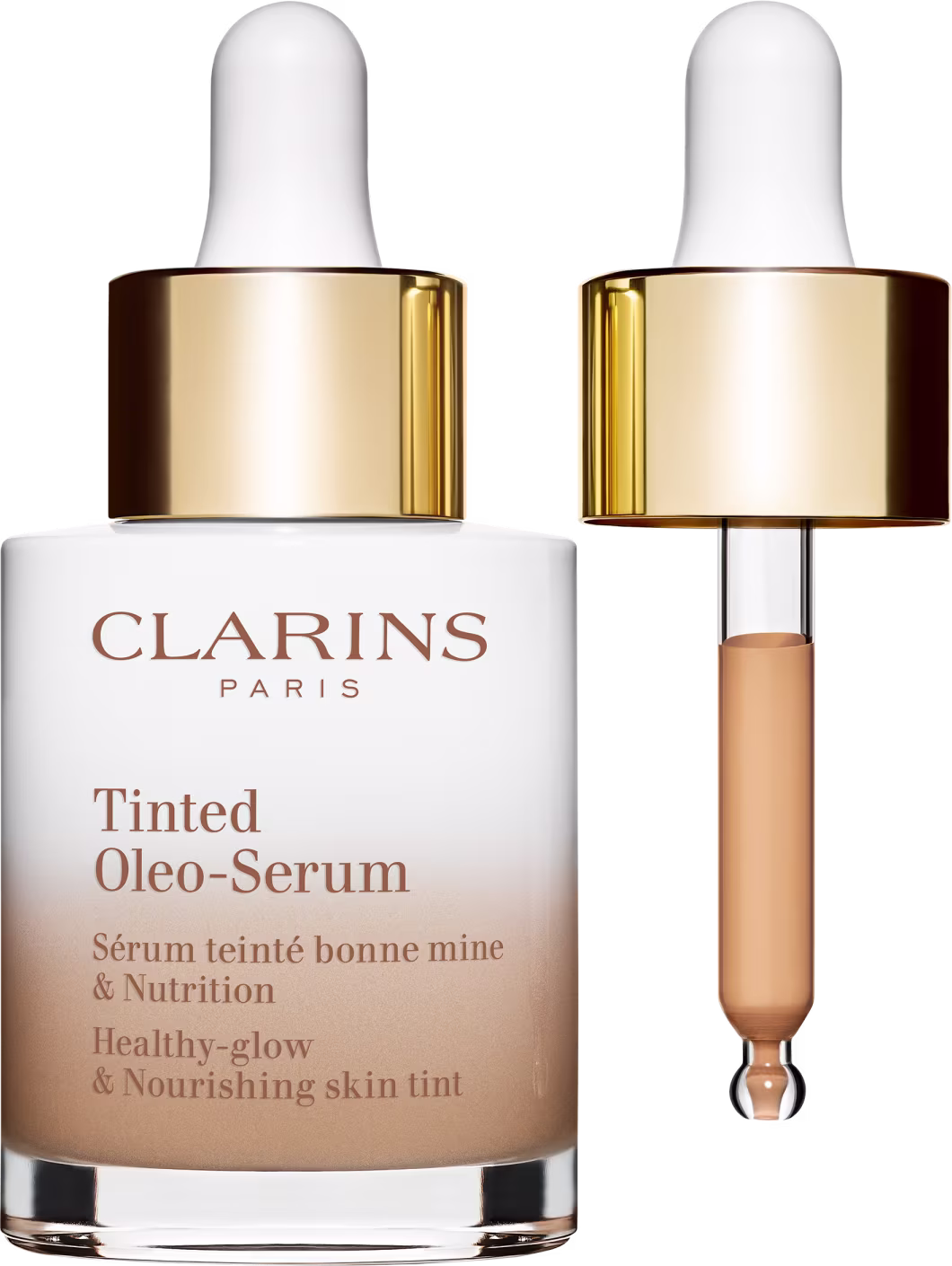 Disponível em 11 tonalidades, o Tinted Oleo Serum, de Clarins, é adequado para todos os tipos de pele, incluindo as mais secas, e se adapta perfeitamente a todos os tons de pele.