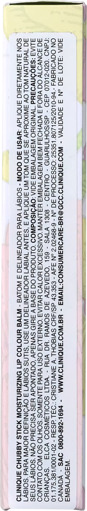 O Batom Cremoso Clinique Chubby Stick possui uma fórmula com manteiga de karité, sendo altamente nutritiva que hidrata profundamente os lábios, evitando rachaduras e descamações. Desliza facilmente nos lábios, sendo rápido e fácil de aplicar. Conta com uma gama de tons à prova de erros para misturar e combinar entre si.