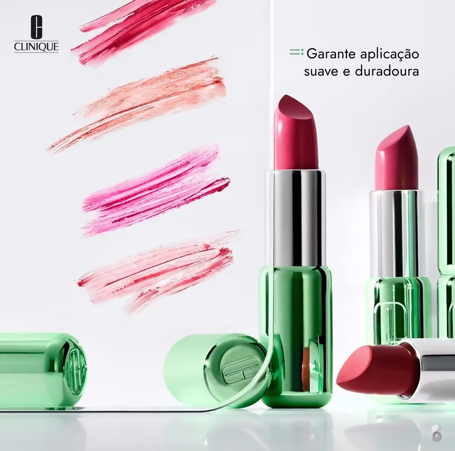 Batom com acabamento brilhante. Clinique Pop Longwear Lipstick combina cores vibrantes com um primer, garantindo uma aplicação suave e confortável.