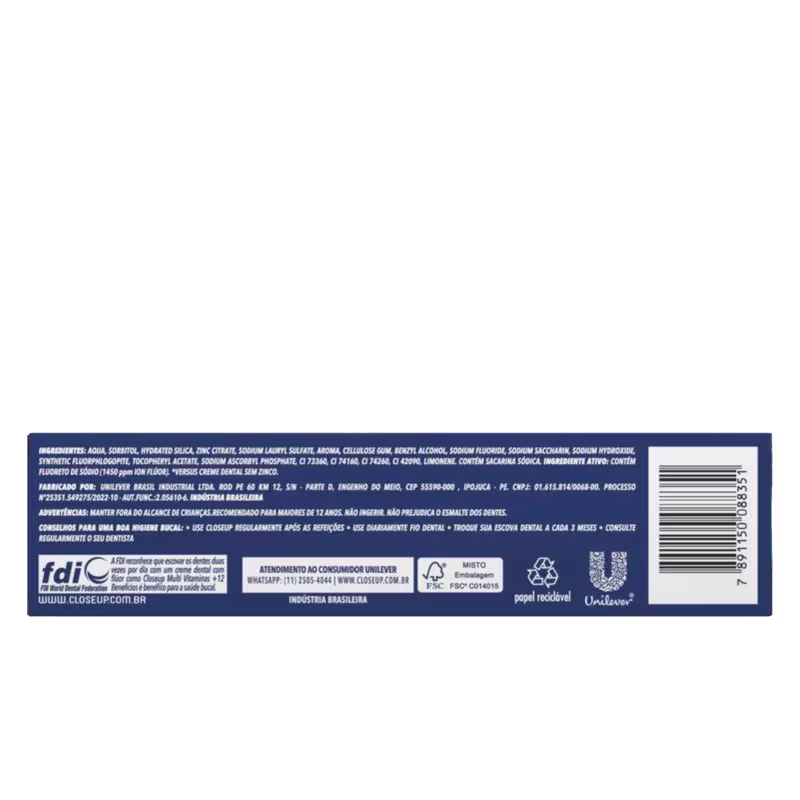 Creme Dental Close Up Multivitaminas +12 Benefícios Branqueador: 8 horas de proteção completa na boca. Melhores Pastas de Dentes de Close Up na BLZ Ver mais ❯
