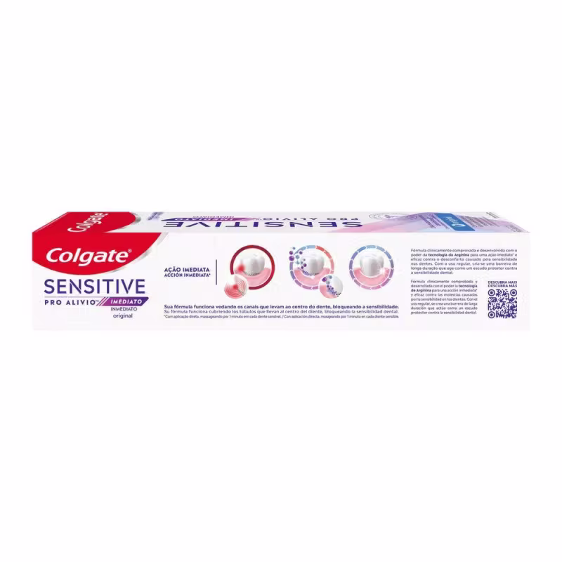 O Creme Dental Colgate Sensitive Pro Alívio Imediato Original investe no poder da Arginina para promover alívio aos dentes sensibilizados. Sua fórmula age vedando os canais que levam ao centro do dente, bloqueando a sensibilidade. A partir do uso regular, cria-se uma barreira de longa duração, que atua como um escudo protetor contra a sensibilidade dental.