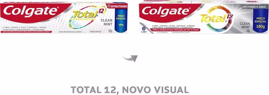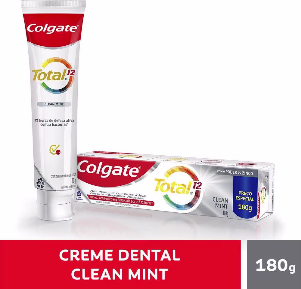 Creme dental. Colgate Total 12 Clean Mint proporciona cuidado bucal completo, elimina 99% das bactérias e protege por até 12h, deixando um delicioso hálito refrescante.