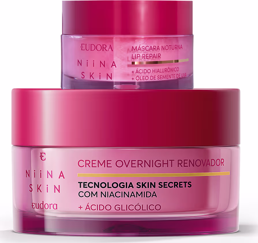 Não sei o CEPO Combo Niina Secrets Skin traz uma rotina de skincare noturna prática e eficiente para que você sinta a pele do seu rosto e lábios mais macia e bem cuidada enquanto você dorme. Com ativos tecnológicos que agem durante a noite, seu ritual de autocuidado oferece resultados impressionantes para a manutenção da hidratação da pele ao longo do dia.