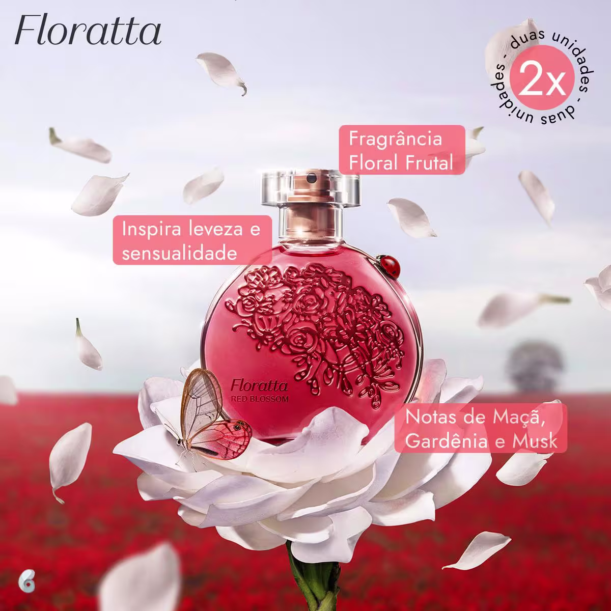 O Desodorante Colônia Floratta Red Blossom, o Boticário, é uma fragrância inspirada em Floratta Red, com um toque de sensualidade, frescor e leveza no seu dia a dia. Uma releitura mais vibrante, floral e suculenta da Maçã de Vermont que, envelopada pela feminilidade da gardênia e sofisticação de notas amadeiradas cremosas, entrega uma perfumação com alta fixação e irresistível.