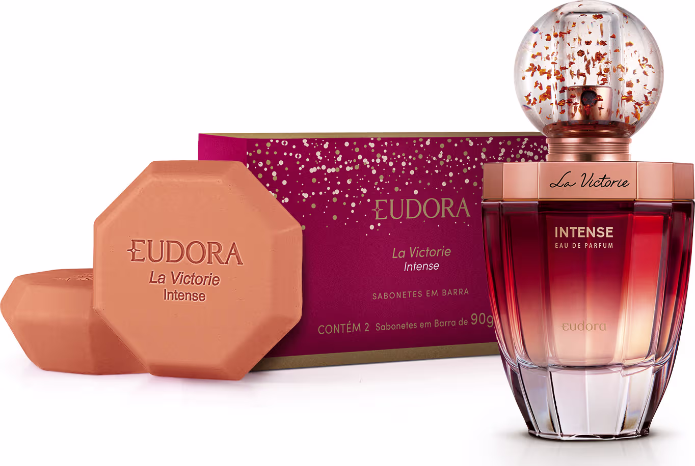 Conjunto La Victorie Intense Eudora com fragrância feminina marcante e sabonete em barra. Melhores Conjuntos da Eudora na BLZ. Ver mais ❯