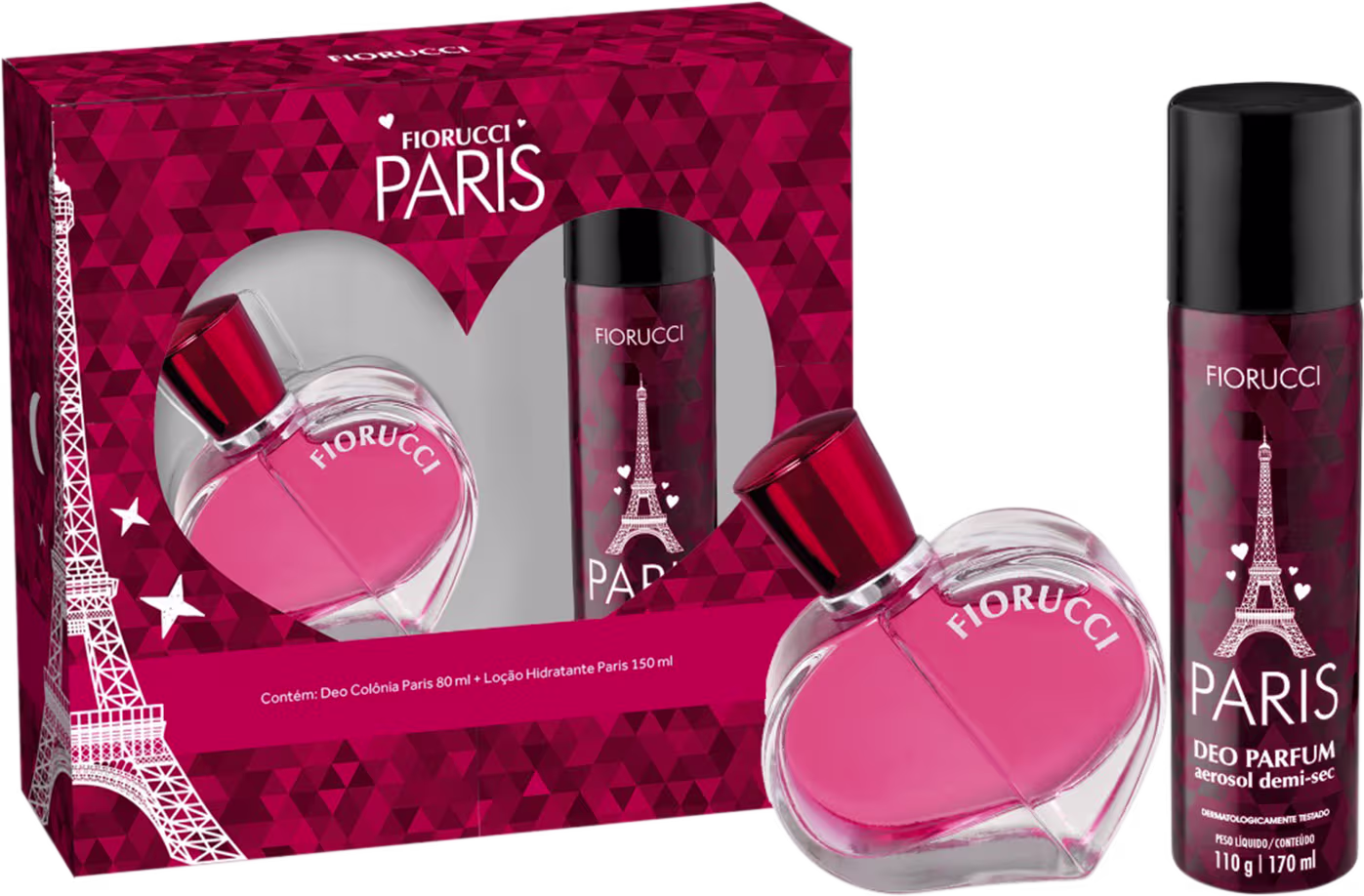 Conjunto Paris Fiorucci Feminino, com perfume feminino floral oriental e desodorante. Melhores Kits para Presente Fiorucci na BLZ Ver mais ❯