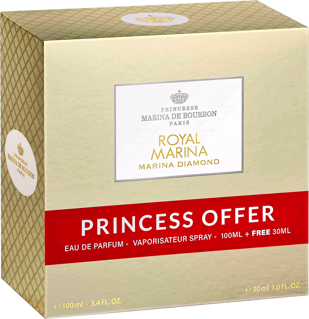 A princesa Marina de Bourbon sempre esteve envolvida com o mundo do luxo e da beleza. Apaixonada pelos aromas da natureza, se inspirou neles para criar suas fragrâncias. O perfume que leva seu nome foi inspirado nas flores de seu próprio jardim real, no castelo onde vive na França. Sinônimo de classe, Marina de Bourbon retrata a realeza e toda linha de fragrâncias da marca tem a sofisticação dos nobres franceses.