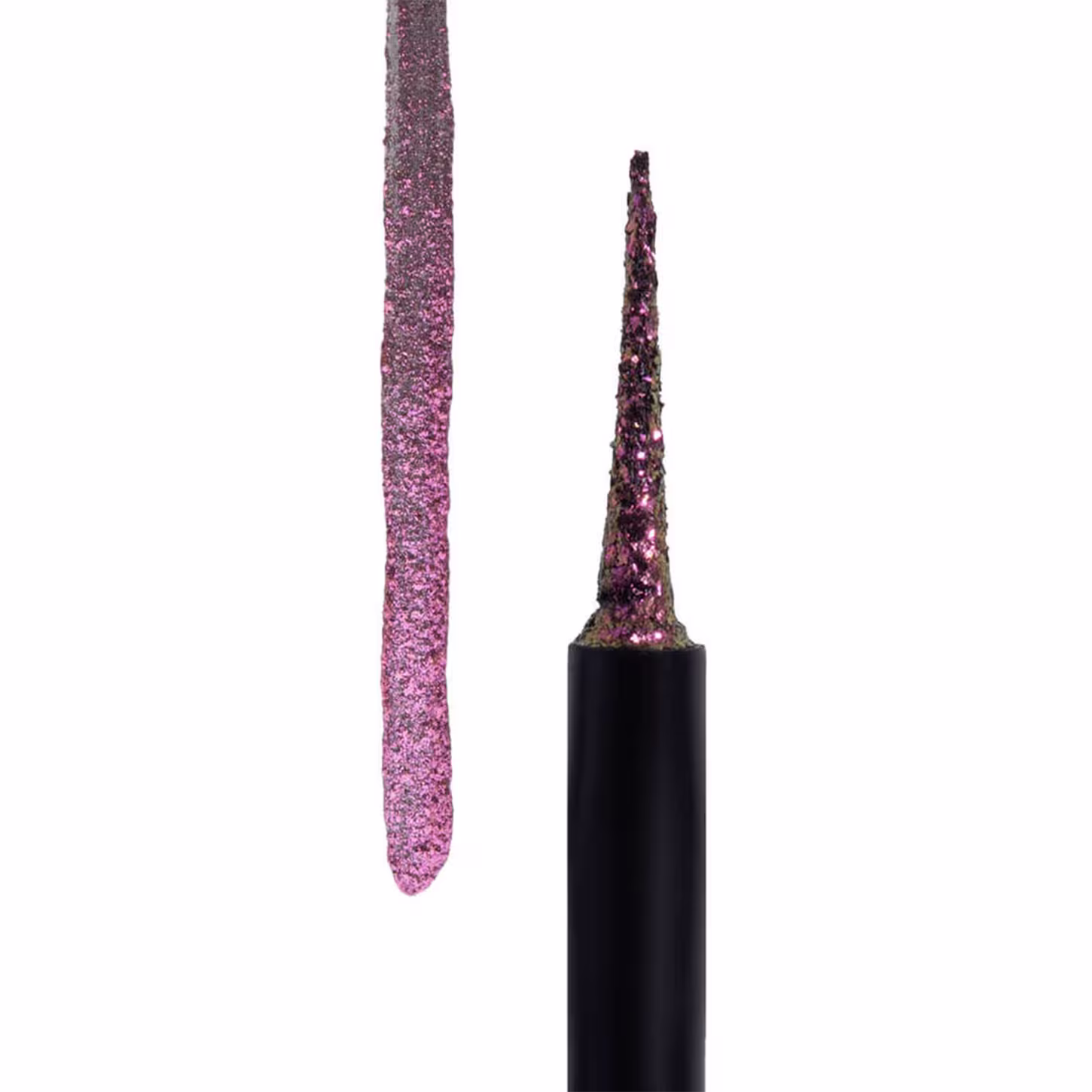 Delineador líquido com acabamento em glitter. Contém1g apresenta textura líquida de alta cobertura na pele, com efeito 3D extremamente pigmentado, ideal para criar looks chamativos e criativos nos olhos.