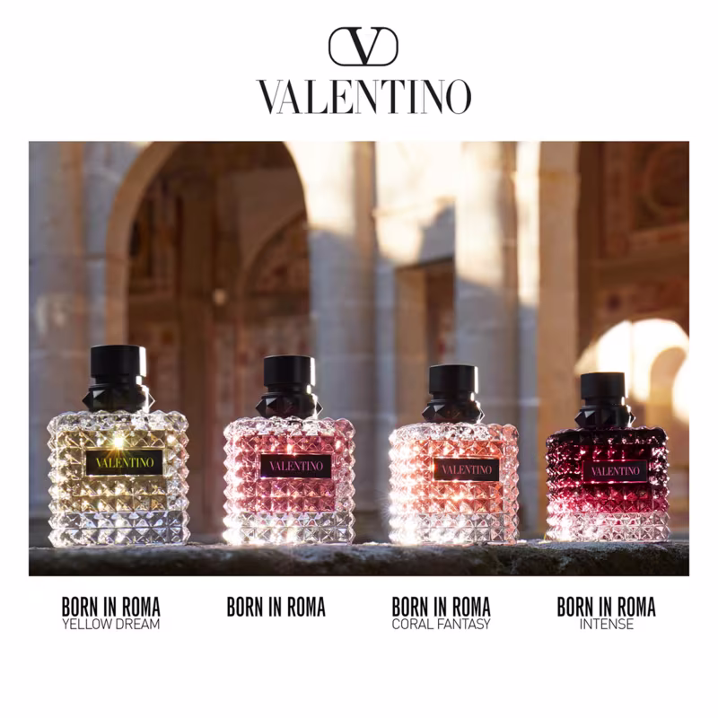 O Perfume Coral Donna Born in Roma, de Valentino, é uma fragrância floral frutada que celebra a energia vibrante de Roma ao pôr do sol. Notas de kiwi ouro rosa, jasmim e rosa se fundem com um acorde de almíscar, criando uma fragrância feminina, moderna e brilhante.