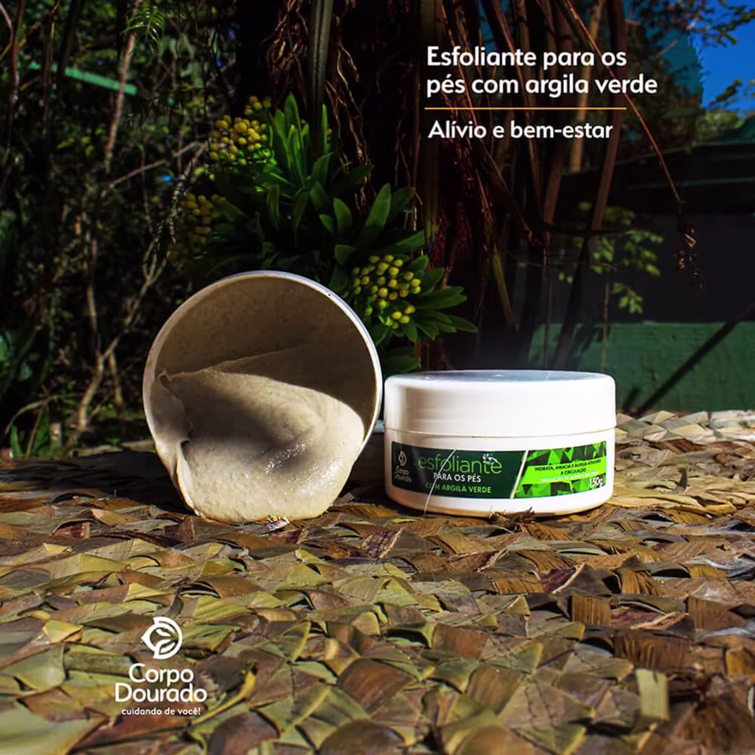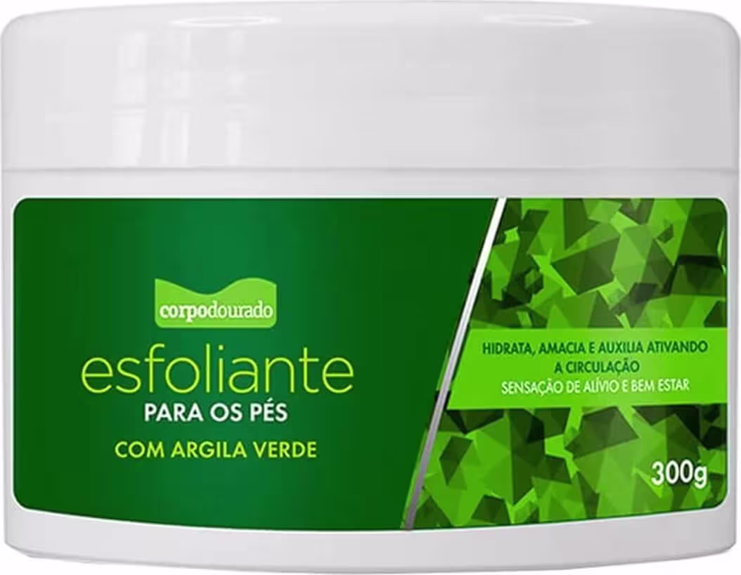 Não sei o CEPEsfoliante para os pés. Corpo Dourado Clinic Mais Argila Verde possui propriedades antioxidantes e refrescantes para deixar a pele dos pés macia e com toque suave.
