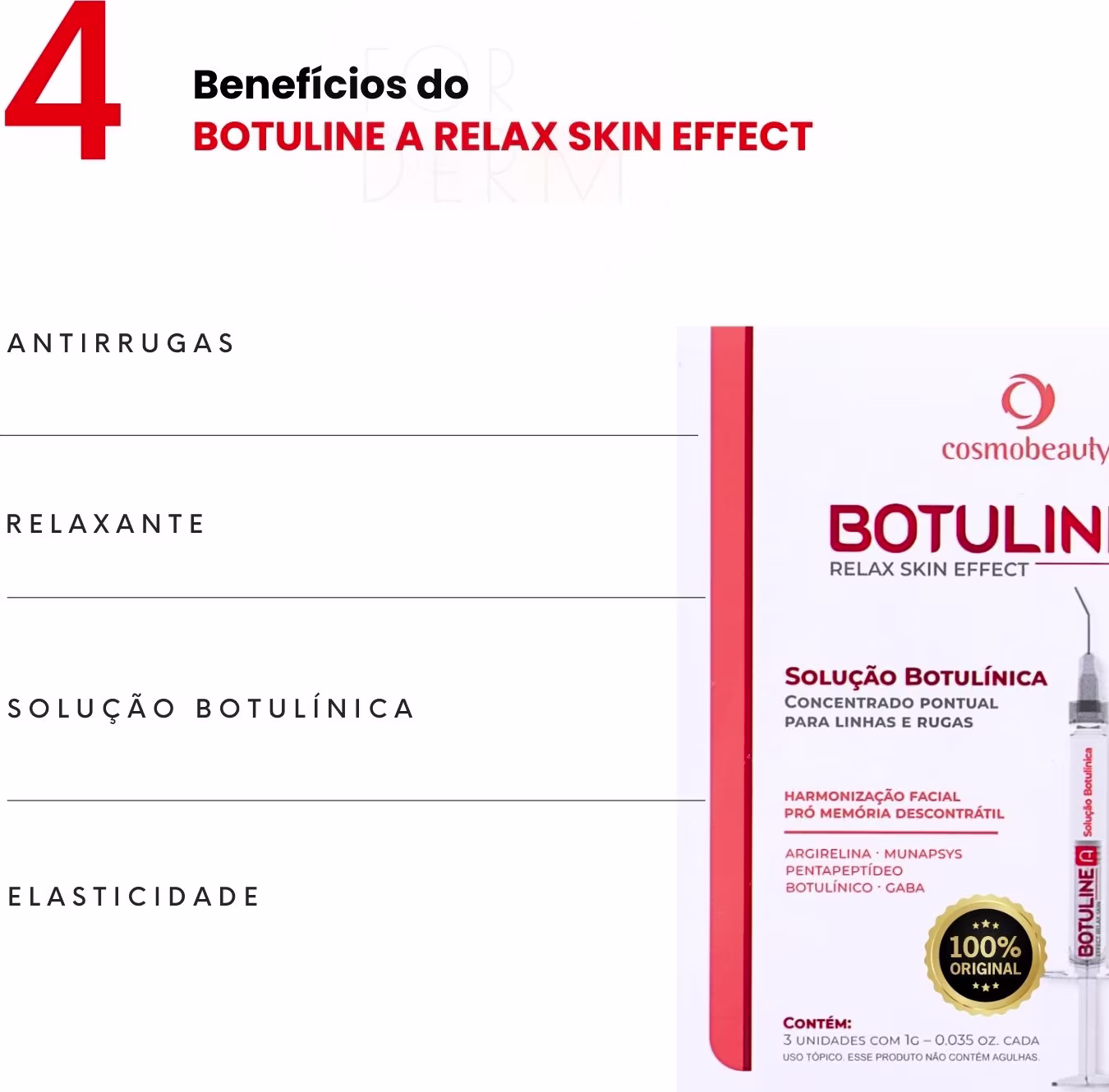 ATENÇÃO: O produto não possui agulhas! O uso é tópico semelhante a um creme, com aplicação PONTUAL.
