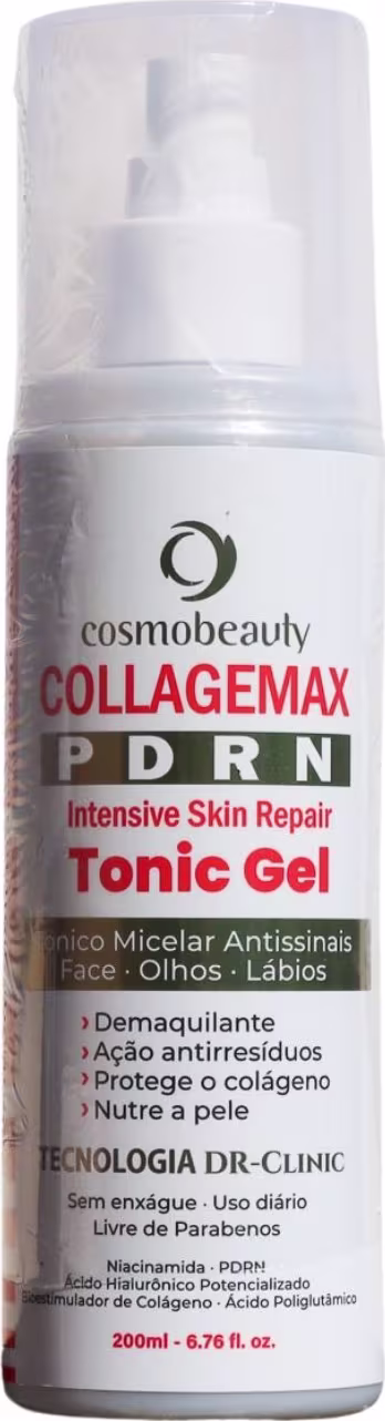 Não sei o CEPÁgua micelar. Cosmobeauty CollageMax PDRN Tonic Gel proporciona uma limpeza delicada que remove impurezas e retira até maquiagem e produtos a prova d´água.