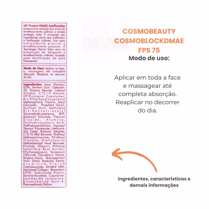 Não sei o CEPProtetor solar. Cosmobeauty Cosmoblock UV PROTECT FPS 75 protege e proporciona melhor tonificação e firmeza, com ação antioxidante.