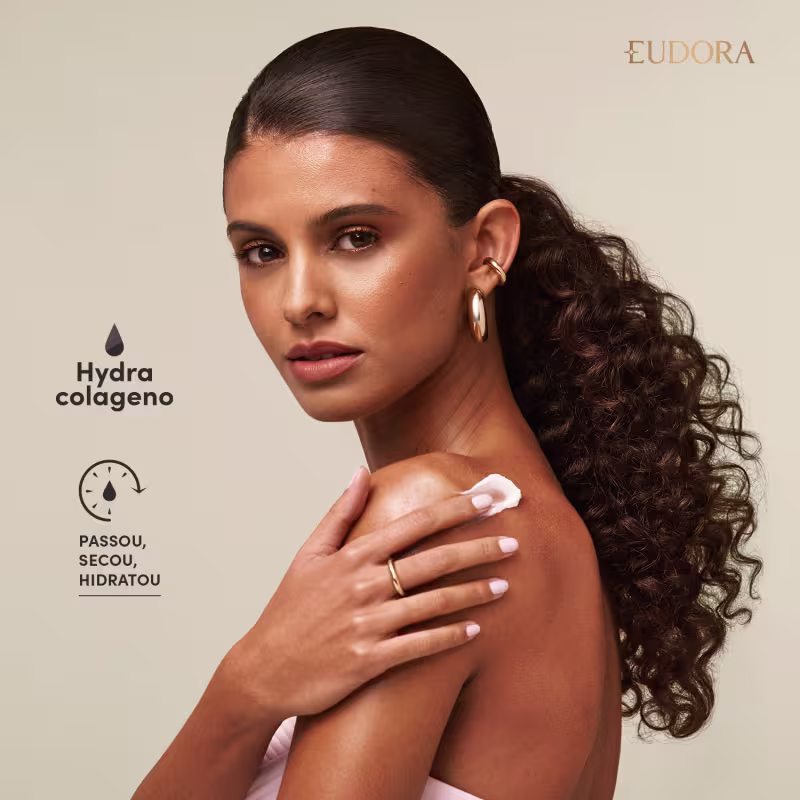 Agora com Hydracolageno, Colágeno vegetal, que junto com a fórmula exclusiva de Eudora Instance, proporciona sensação de firmeza, vitalidade e hidratação profunda por até 48 horas*