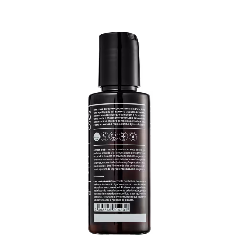 Cris Dios Organics Repair Pré-Treino é perfeito para ser usado antes e depois de suas atividades físicas. Sua fórmula de alta performance preserva a pureza de ingredientes naturais e orgânicos.