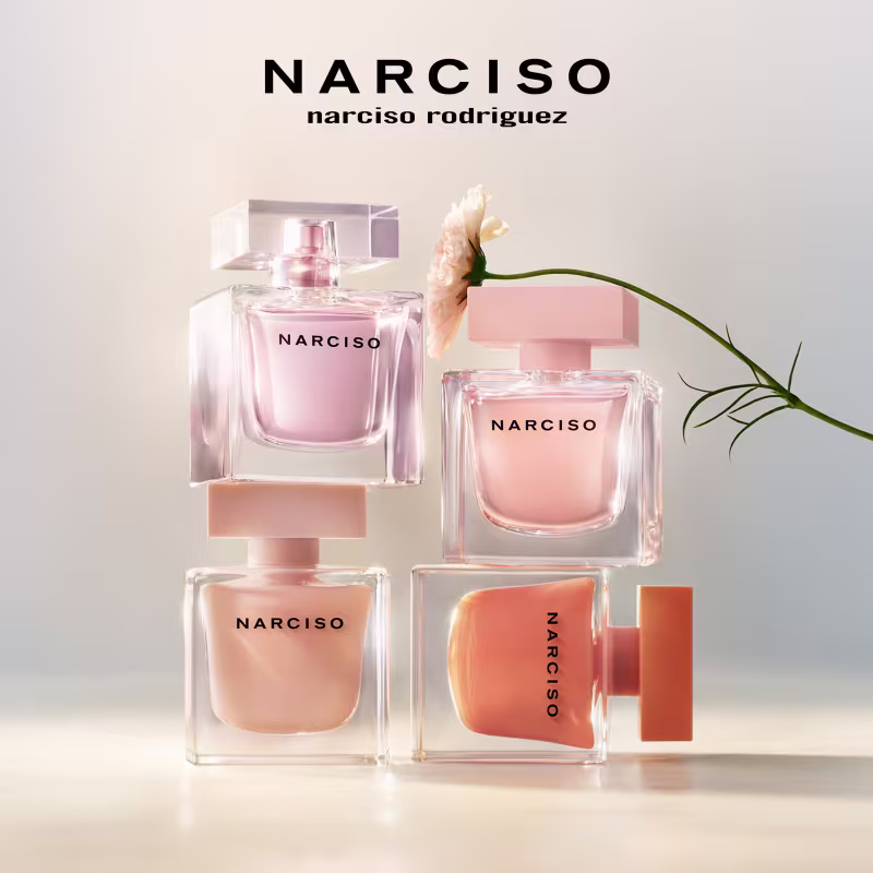 Narciso Rodriguez é uma grife de moda marcada pelo contraste do clássico com o moderno, reconhecida como referência mundial de elegância e sofisticação. Além das peças de vestuário, a marca conta com sua própria perfumaria, que destaca o luxo atemporal, utilizando três bases para suas fragrâncias: precisão, elegância e sobriedade. Os perfumes Narciso Rodriguez possuem o Almíscar como referência olfativa, o que sugere um toque atraente e muito sensual.