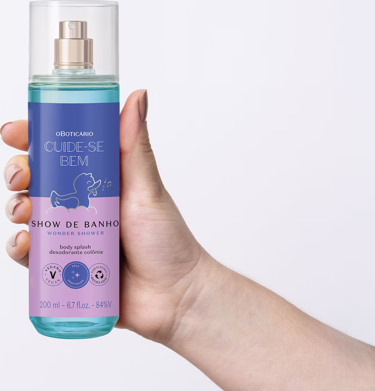 O Body Splash Desodorante Colônia Cuide-se Bem Show de Banho o Boticário conta com uma fragrância agradável, promovendo um momento de conforto e perfumação que sua pele tanto precisa no dia a dia. Vegano, com 94,2% de ingredientes naturais e embalagem com plástico reciclado, este item é uma opção de perfumação prática e sustentável.