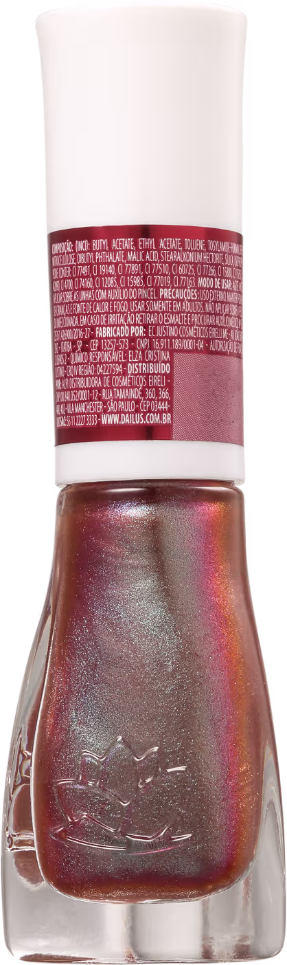 Esmalte com acabamento metálico. Elegante, Dailus Esmalte Metálico dá um toque moderno e fashion às unhas. Proporciona um toque de brilho ao visual.