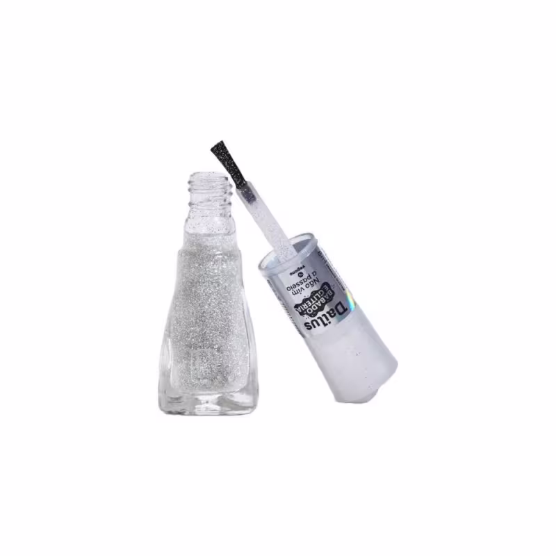Não sei o CEPEsmalte cintilante com efeito holográfico. Dailus Babado e Gliteria traz diferentes partículas de brilho multicolorido.