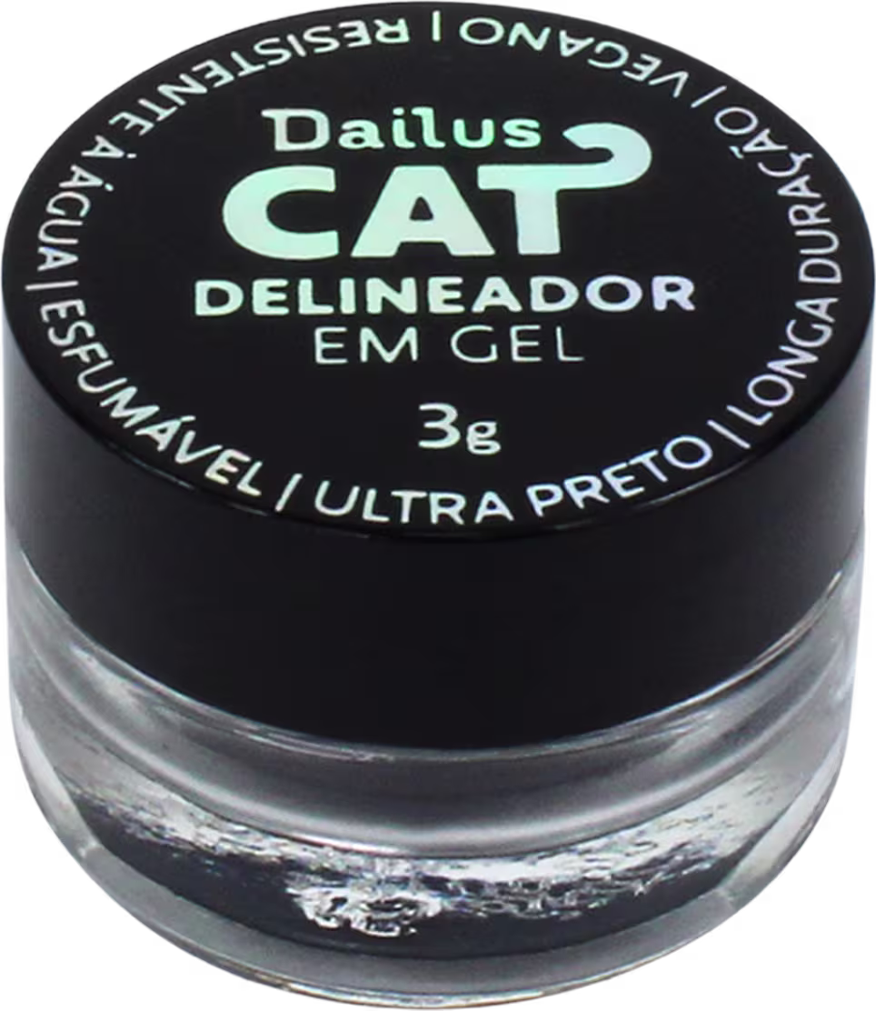Delineador em Gel Dailus CAT Preto é uma ótima opção para seu nécessaire! Com ele, você garante pigmentação, secagem rápida e facilidade para construir o traço dos seus sonhos - seja ele mais grosso, mais fino ou esfumado. O acabamento matte entrega boa duração e evita que o pigmento escorra ao longo do dia.