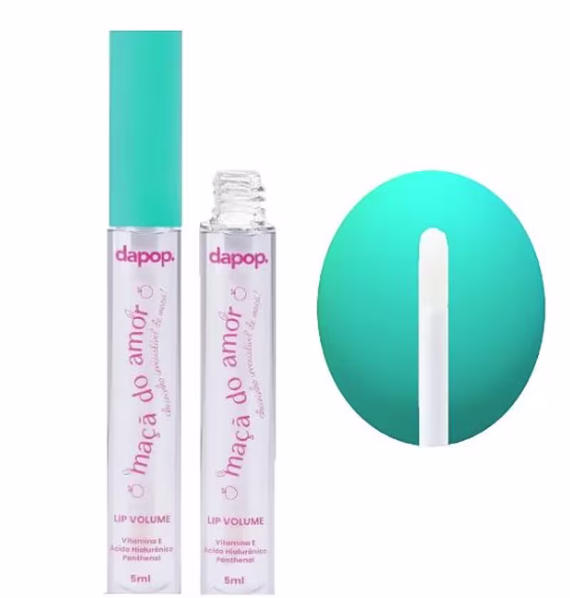 Gloss labial. Dapop Maçã do Amor Lip Volume proporciona lábios mais volumosos e hidratados com um cheirinho delicioso de maçã do amor.