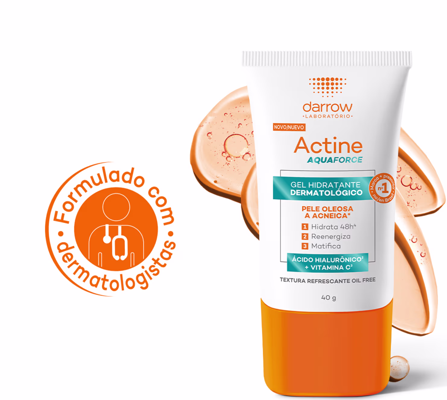 Gel hidratante facial. Darrow Actine Aquaforce é a escolha ideal para peles que buscam hidratação e controle de oleosidade.