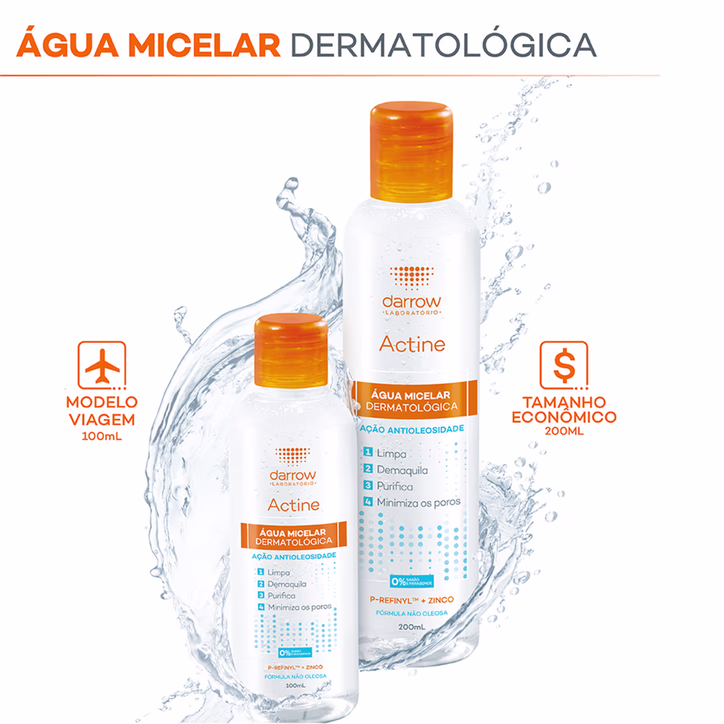 A Água Micelar Darrow Actine alia a tecnologia micelar a um complexo de ativos antiolesidade. A fórmula da Água Micelar Darrow possui um alto poder de limpeza, que remove imediatamente impurezas, resíduos de maquiagem e excesso de oleosidade.