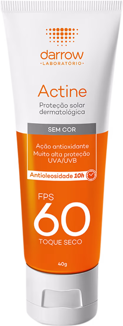Protetor solar. Darrow Actine FPS60 é ideal para pele brasileira oleosa ou com acne.