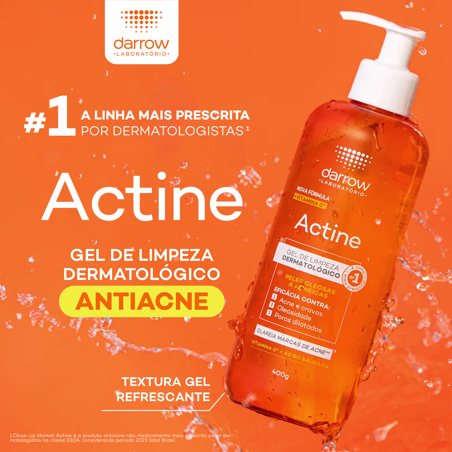 Gel de limpeza facial. Darrow Actine Gel de Limpeza é o tratamento mais prescrito por dermatologistas para pele oleosa ou com acne.