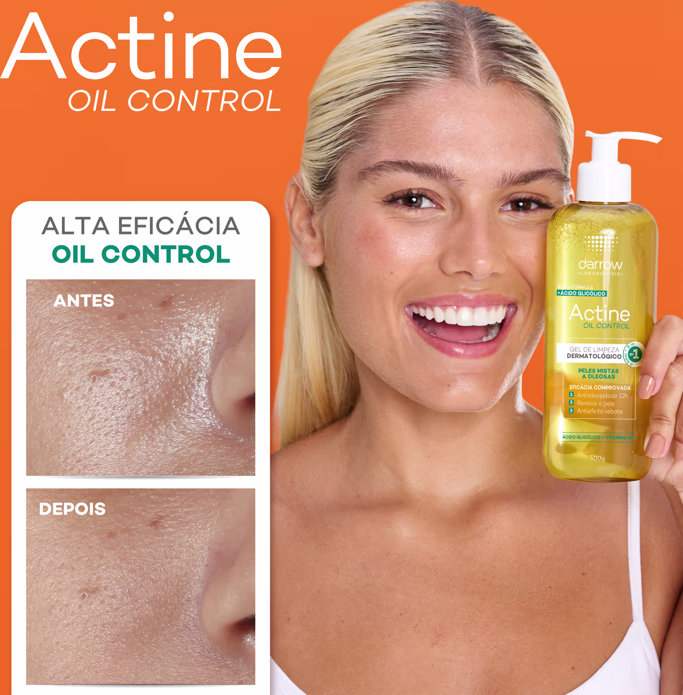 Gel de limpeza facial. Darrow Actine Oil Control é o melhor aliado no cuidado diário para peles mistas a oleosas.