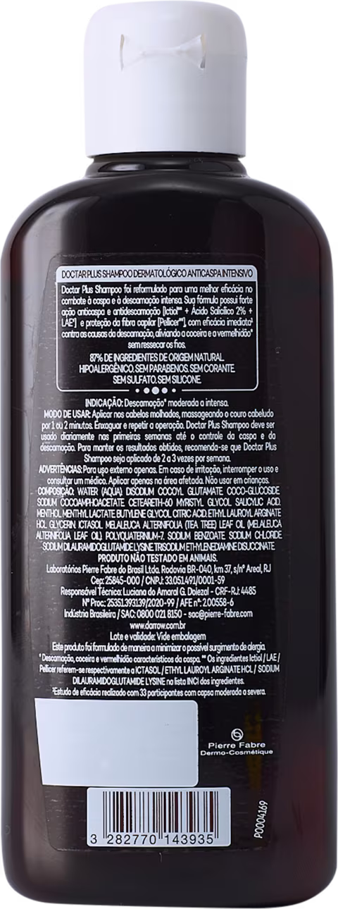 Shampoo para cabelos com caspa. Darrow Doctar Plus proporciona eficácia imediata e intensa contra a descamação e coceira.