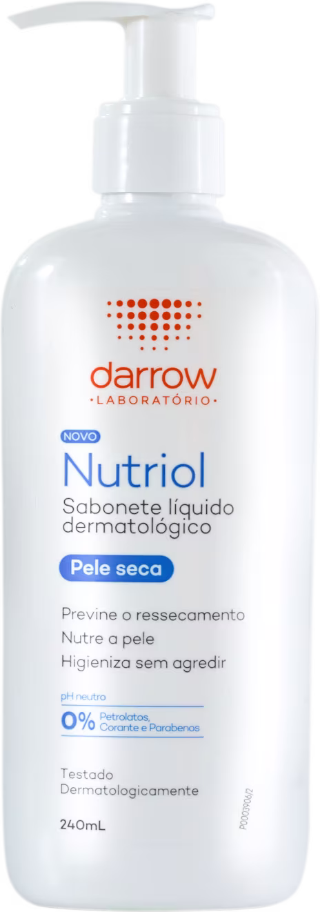 Sabonete líquido para peles secas e ressecadas. Darrow Nutriol Sabonete Líquido limpa enquanto devolve a suavidade da pele com nutrição intensa. Pode ser usado no corpo e rosto.