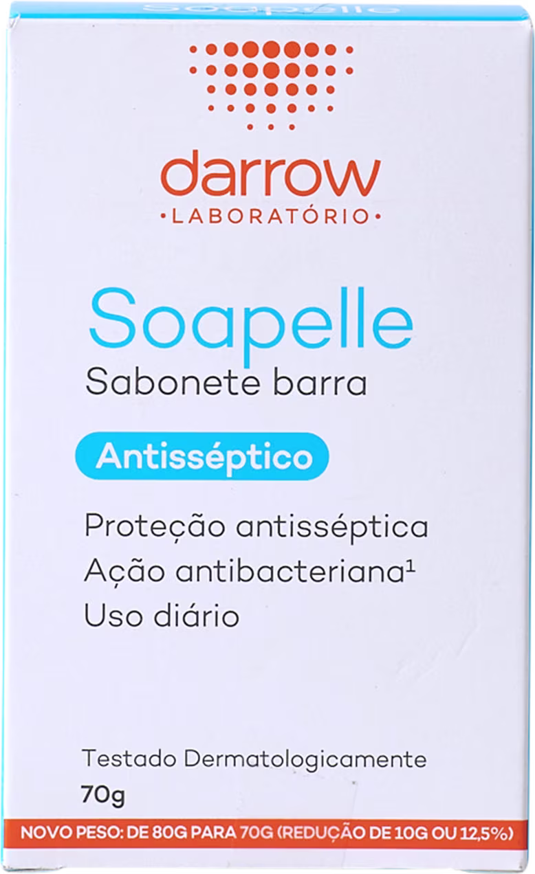 Sabonete antisséptico de uso diário. Darrow Soapelle higieniza rosto e corpo, enquanto mantém a hidratação natural.