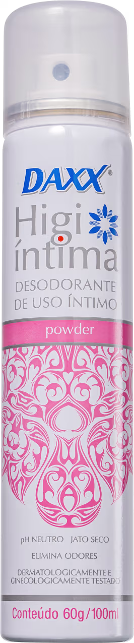 Desodorante íntimo. DAXX Higi Íntima Powder oferece proteção contra eventuais maus odores na região íntima enquanto perfuma com uma suave fragrância atalcada e confortável.