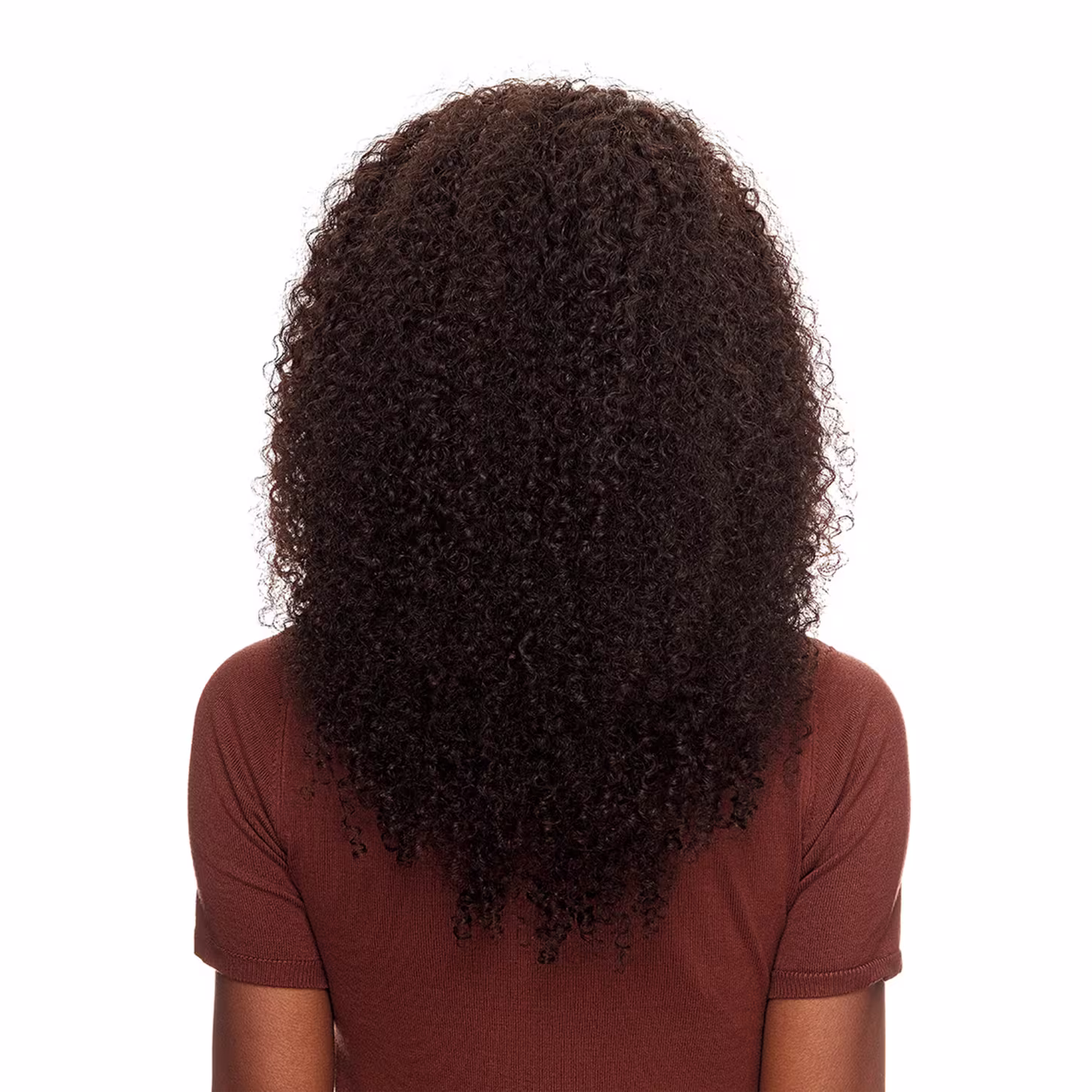 Peruca de cabelo humano cacheado na cor castanho escuro. De Benguela Curly transforma o visual com praticidade.