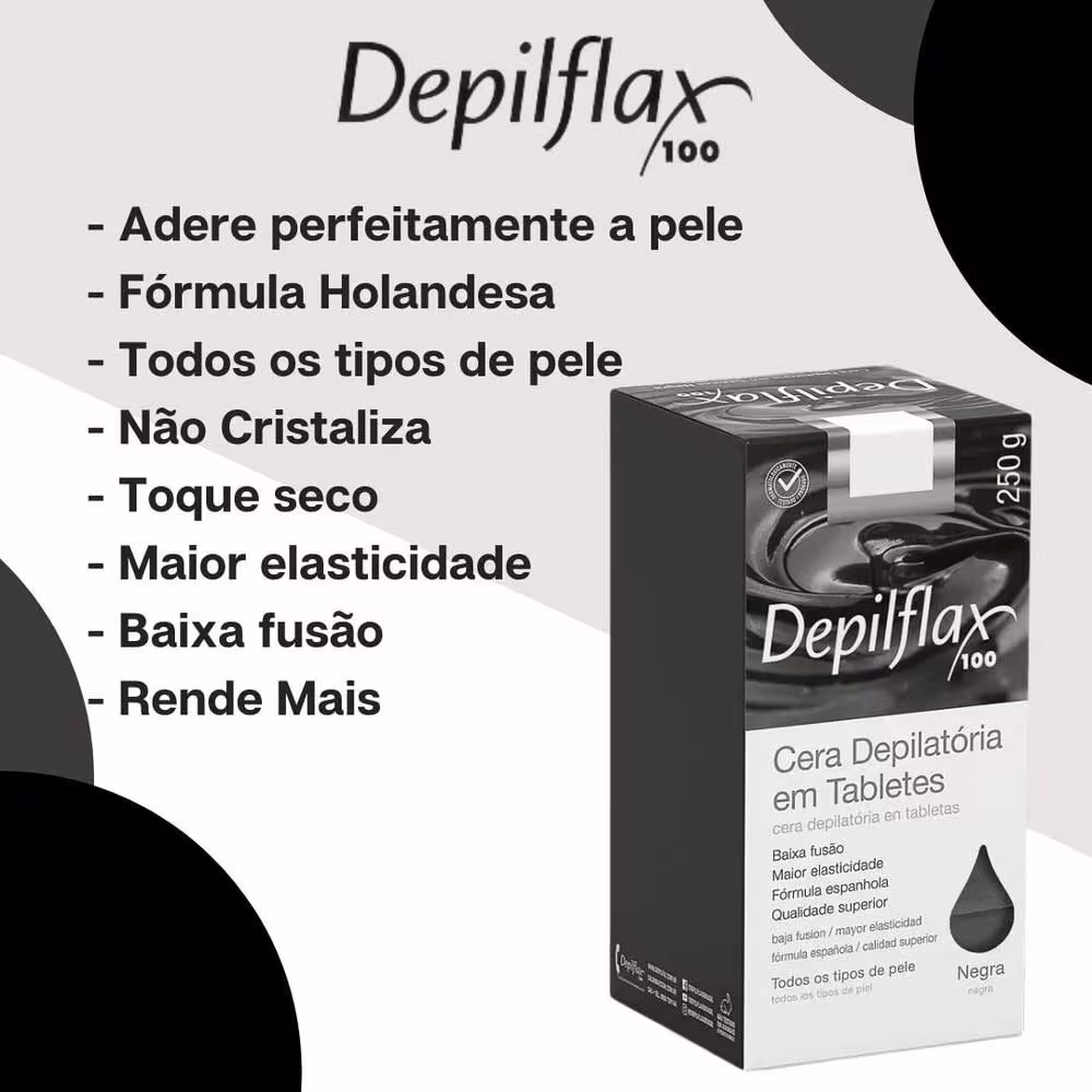 Cera depilatória em tabletes. Depilflax Negra é uma opção ideal para todos os tipos de pele.