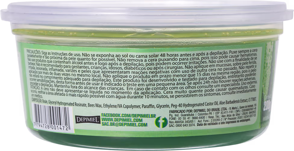 Cera Depilatória para Micro-Ondas Depimiel Vegetal necessita apenas de um único minuto para ser aquecida. Ideal para você que busca comodidade, ou você que deseja realizar sua depilação no conforto de casa. A embalagem em pote é prática, porque pode ser guardada e utilizada, caso haja sobra do produto.