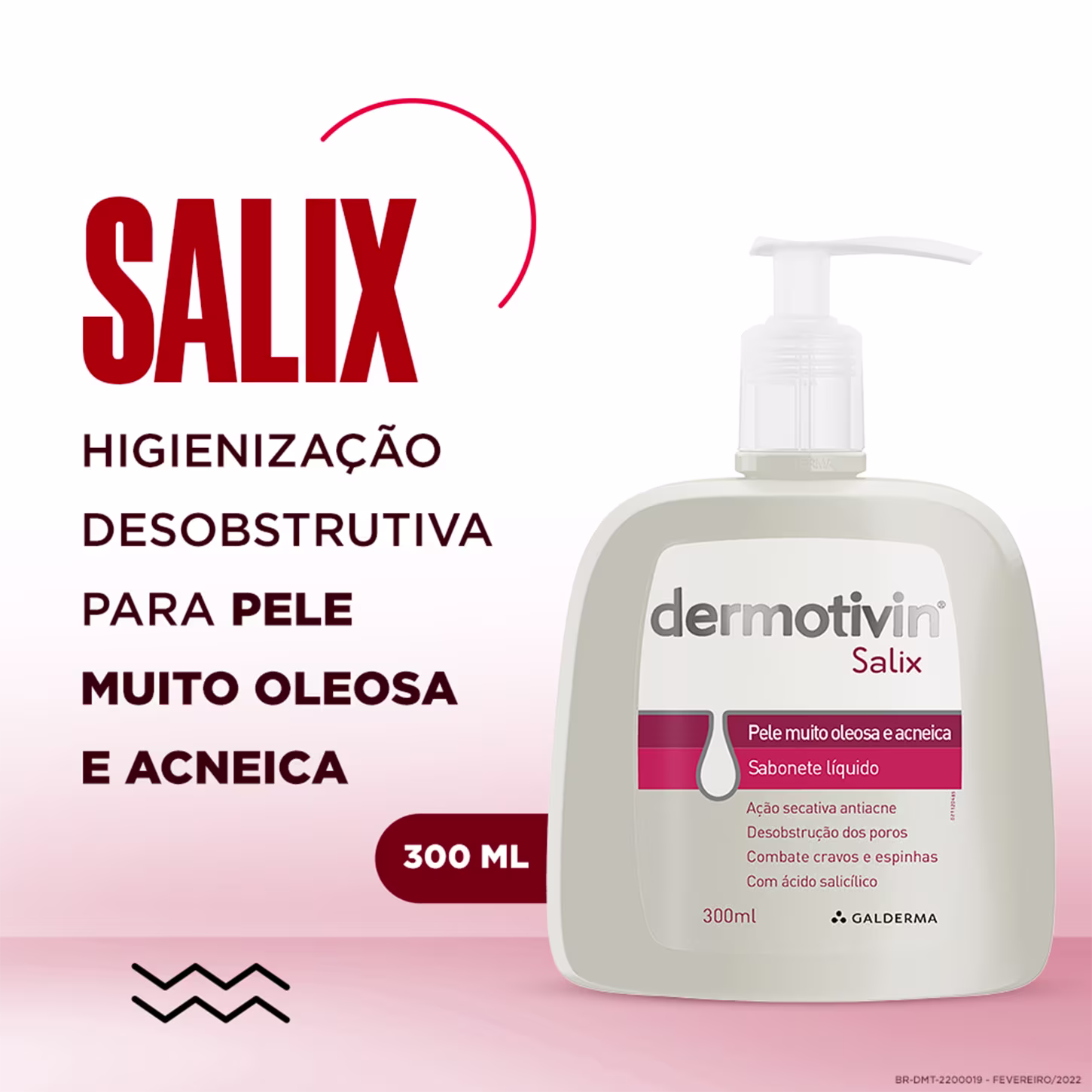Sabonete líquido para pele muito oleosa e acneica. Dermotivin Salix possui efeito secativo, desobstrui os poros e auxilia na diminuição de cravos e espinhas.